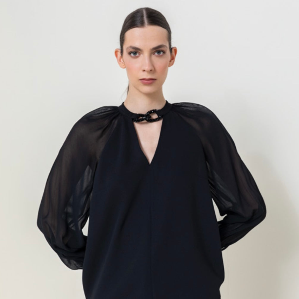 Black Blouse with Beaded Neck