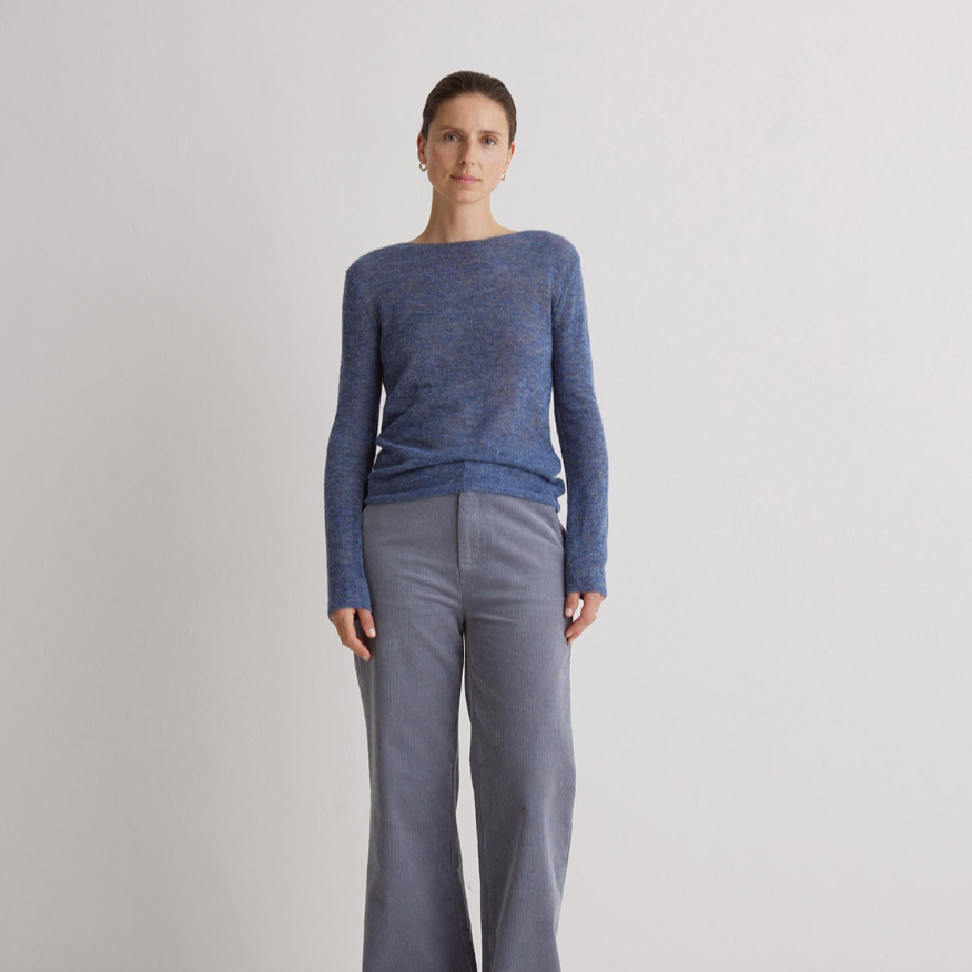 Thin bateau-neck sweater. Extra-fine alpaca and merino wool blend. Regular fit. Long sleeves.