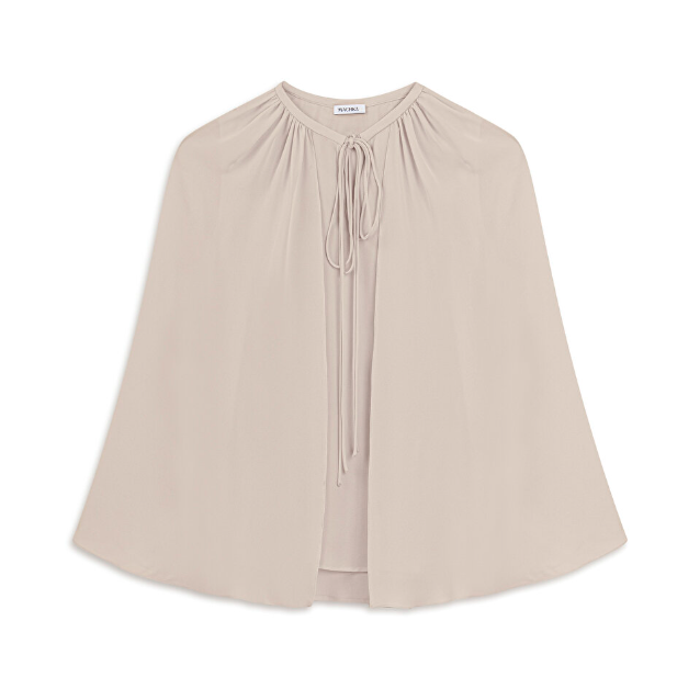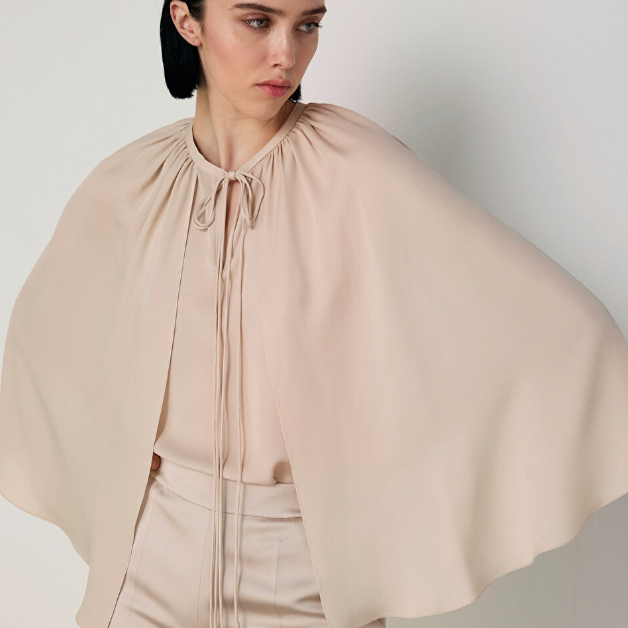 Offering an unconventional style with its cape-like effect, this blouse boasts an elegant design with its 100% silk fabric. With its tie collar and relaxed cut, this gliding design will be a favorite piece in the collection for those looking to create an alternative look.