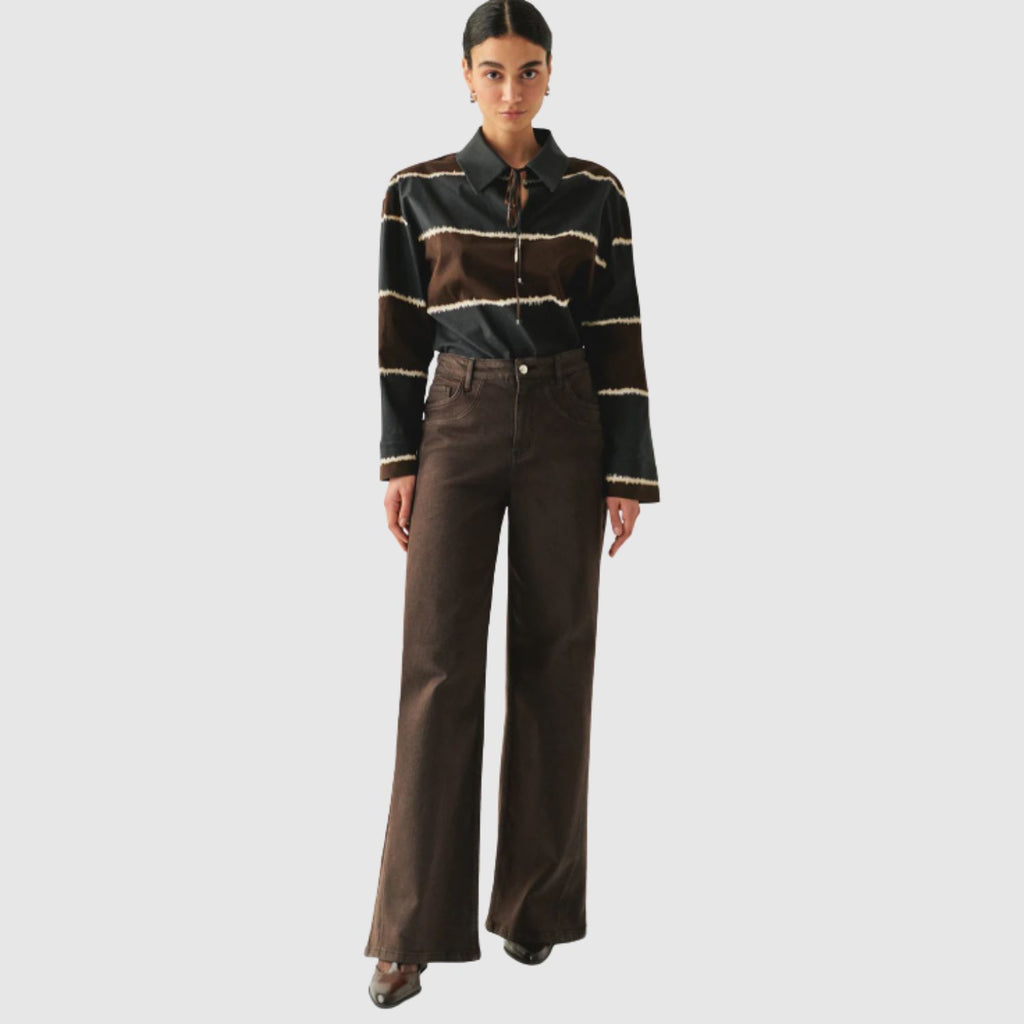 Elevated and earthy, the Daisy Jeans bring a modern feel to the flared-leg silhouette. Cut in rich brown stretch denim for comfort.