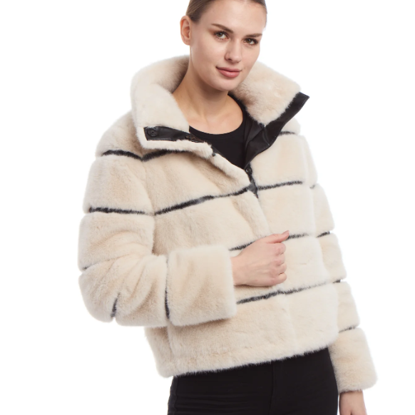 Our Fabulous Soft Faux Fur w/ vegan leather trimmings. Snap closure.