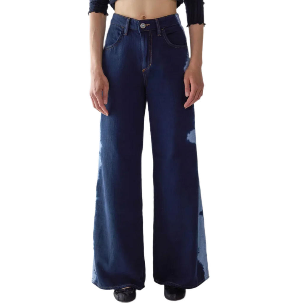 Wide leg jeans with 5 pockets in japan denim with Tie Dye effect. Entirely Made in Italy.