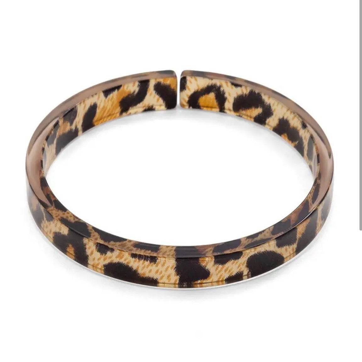 Oversized resin oval links in classic leopard print with a rounded stud.
