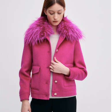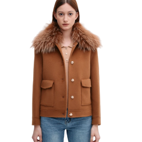 cashmere blend bomber jacket with fox collar.