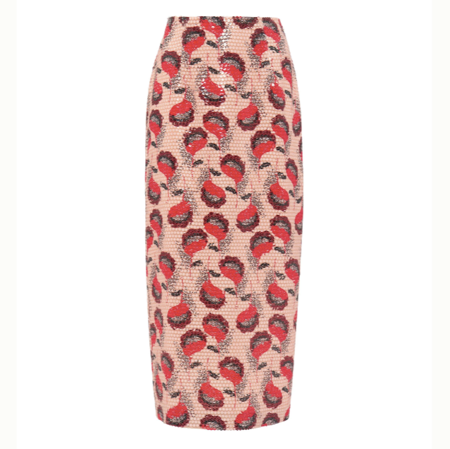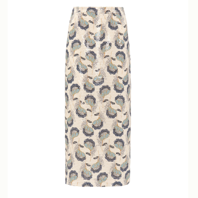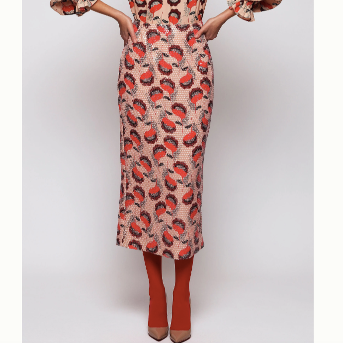 Sequin midi skirt, floral print. High-rise, invisible back zip fastening & central back opening. Fully lined. Straight fit. Sequins and flowers in perfect visual harmony to brighten up your looks.