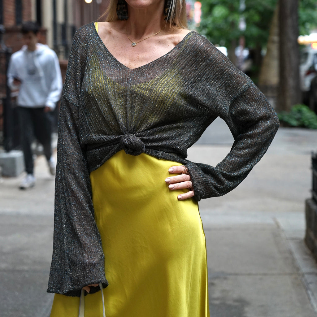 Its fine and perforated knitting adds an element of discreet transparency to the garment while it also combines beautifully with the bottom parts of the collection resulting in comfy and sparkly resort looks.
