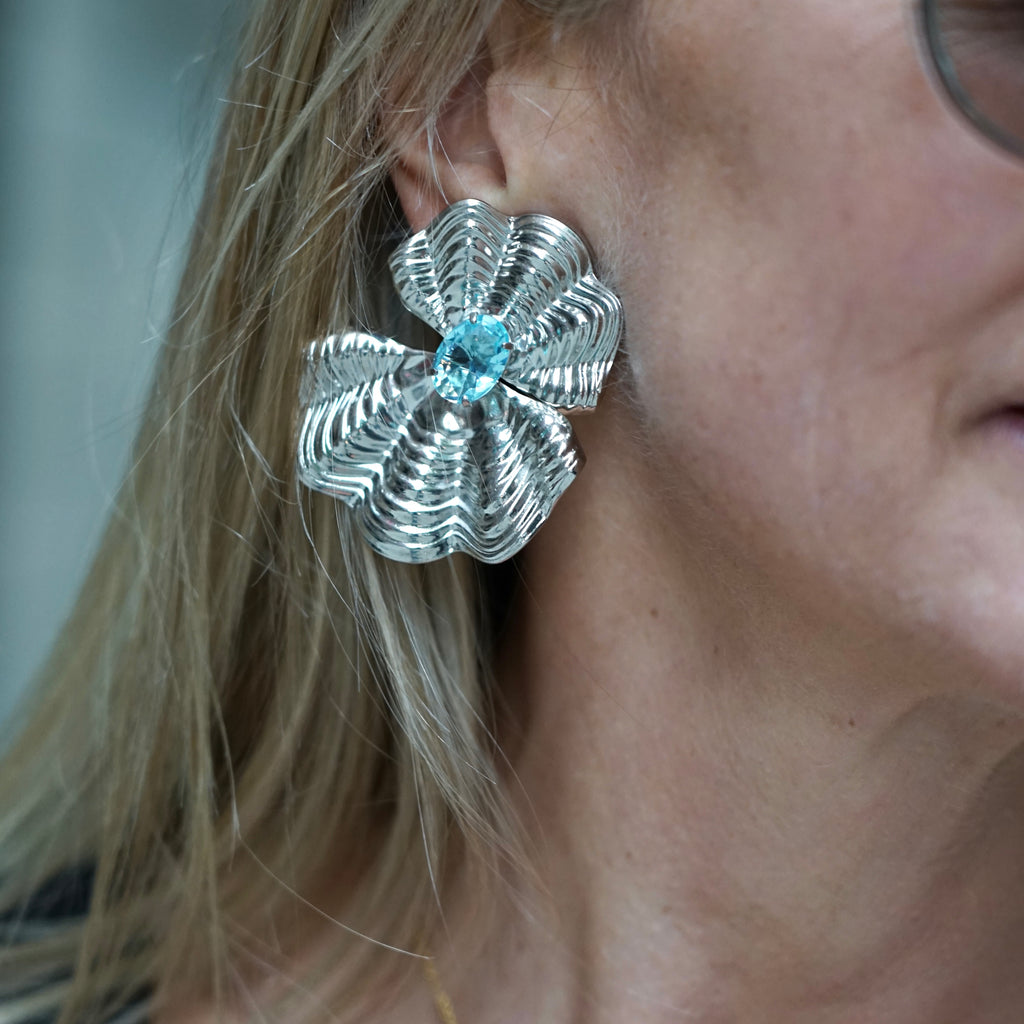 Silver Tide Aquamarine Clip On Earrings